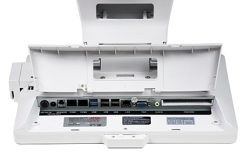 АТОЛ Jazz 15 Pro предназначен для круглосуточного промышленного использования и спроектирован так, чтобы функционировать даже в непредвиденных ситуациях. Прочный металлический корпус и устойчивая подставка обеспечивают надежную фиксацию на рабочем столе. Влагозащищенный экран предотвращает попадание жидкости внутрь POS-терминала, если на него случайно прольется напиток. Все кабели аккуратно скрыты в подставке, что не только придает терминалу эстетичный вид, но и обеспечивает надежность работы, защищая от случайных отключений кассового оборудования.
