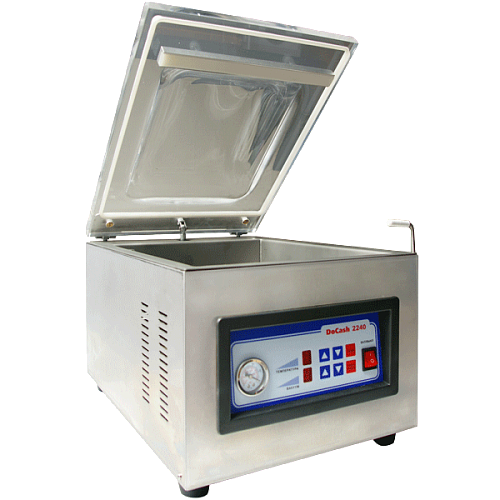 Вакуумный упаковщик банкнот DOCASH 2240 со скоростью упаковки 4 пакета в минуту. Длина сварного шва составляет 270 мм. Есть возможность печати реквизитов на заварочном шве. Размер камеры составляет 300 / 365 / 125 мм. Температура, глубина вакуума и длительность сварки могут устанавливаться вручную.