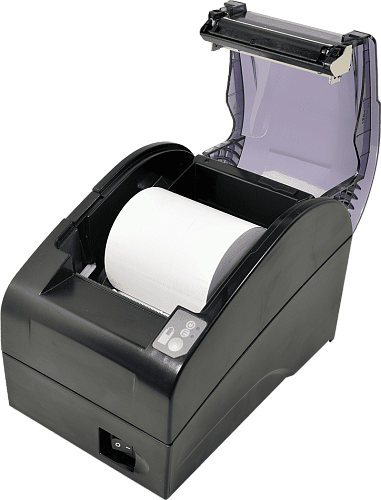 Поддерживает печать на чековой ленте любого размера: экономичных 44 и 57 мм, и широкой: 80 мм. Переход с ленты на лену происходит с помощью переходников в комплекте.